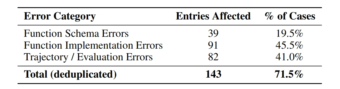 Notably, applied to the Berkeley Function-Calling Leaderboard (BFCL), EigenData reveals that: 71.5% of samples contain critical issues affecting correctness or evaluation.