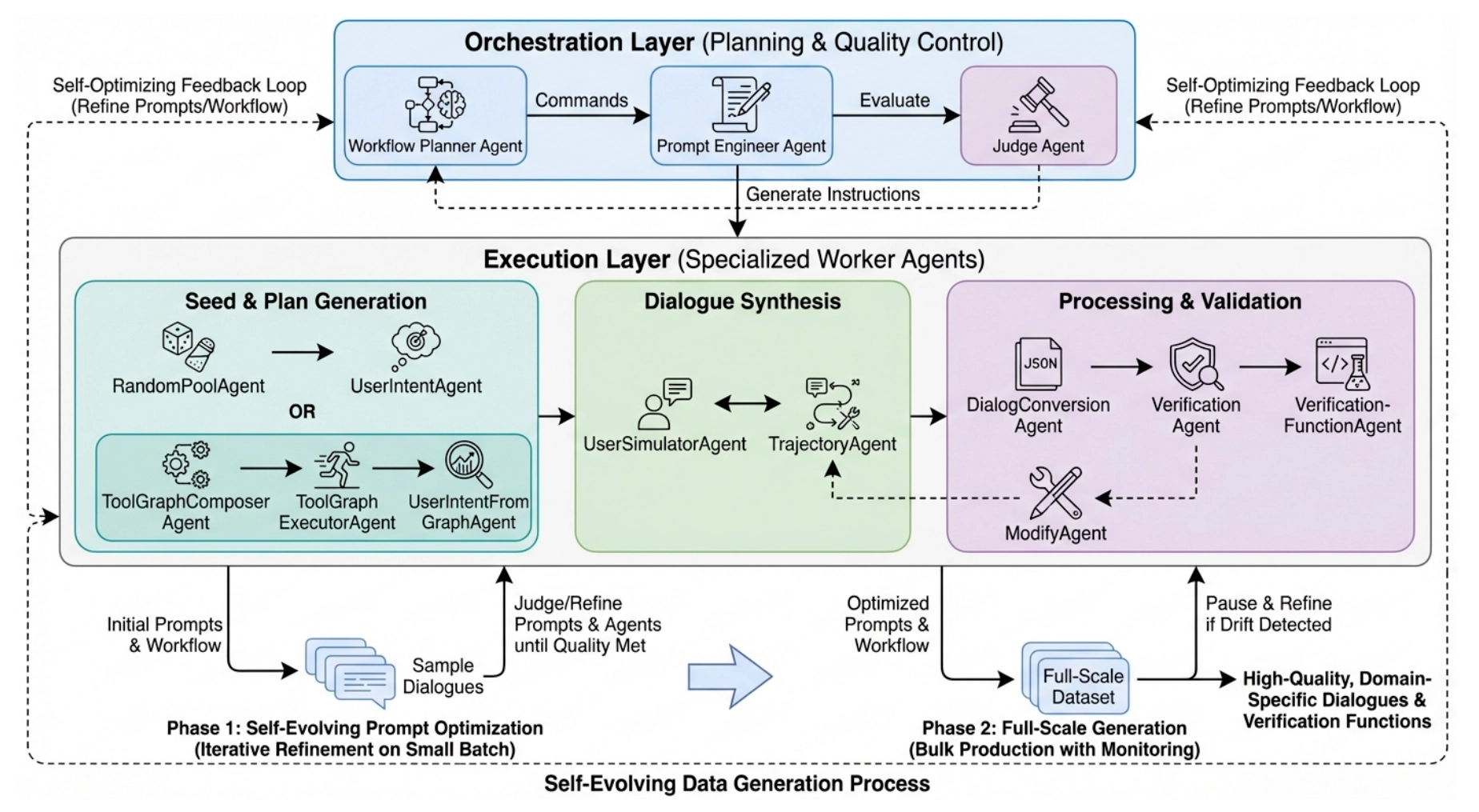 To improve data quality, EigenData employs a self-evolving strategy: